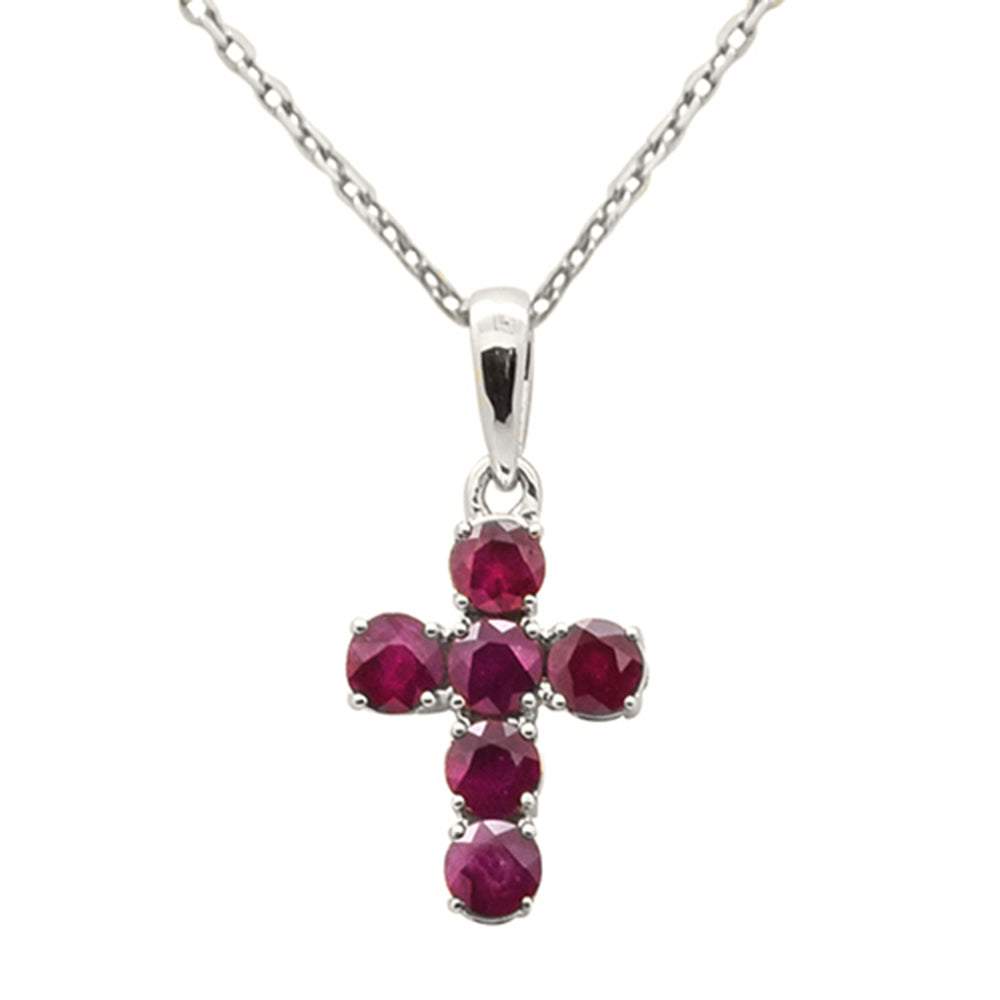 .47ct G SI 14K White Gold Ruby Gemstone Cross Pendant Necklace 18″ Chain
