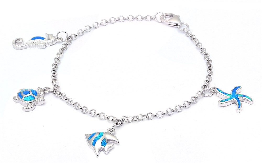 Blue Opal Sea Horse, turtle, Fish, & starfish .925 Sterling Silver Bracelets
