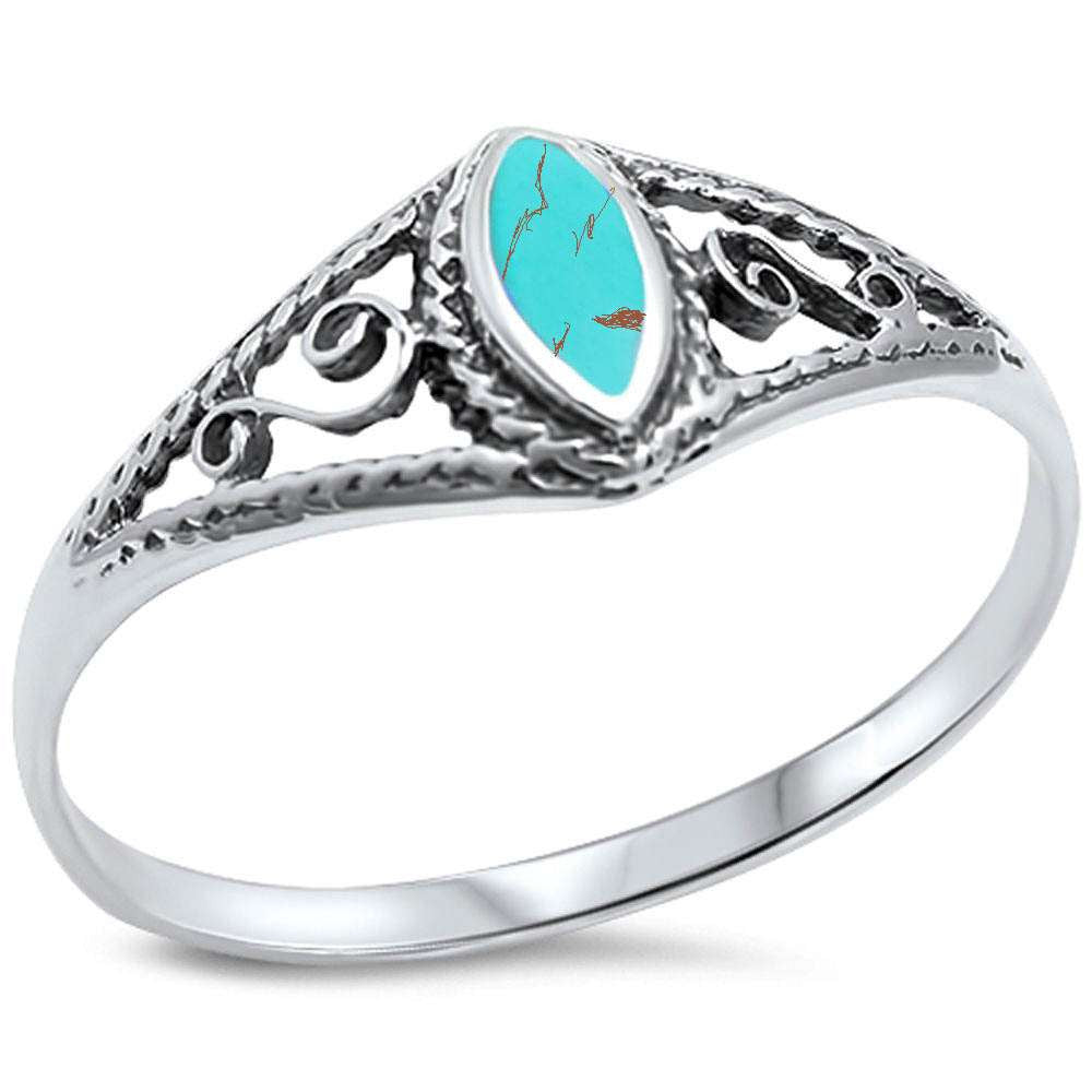 Green Turquoise w/ fancy Design .925 Sterling Silver Ring