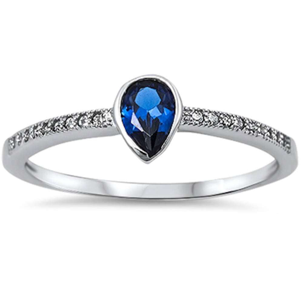 Bezel Set Simulated Blue sapphire Pear Fashion Ring